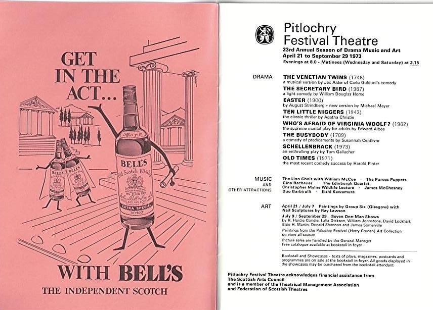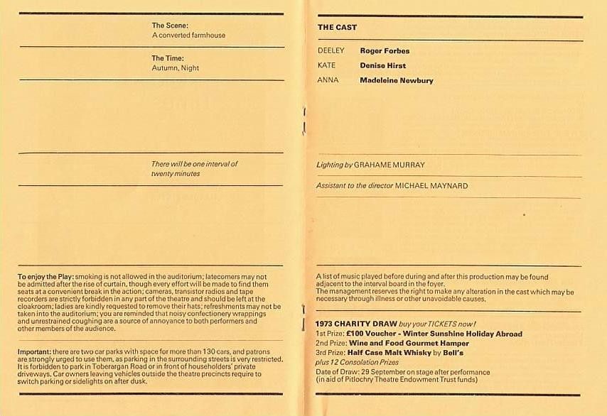 21 April 1973 Evenings at 8pm, Matinées Wednesday and Saturday at 2:15pm. |